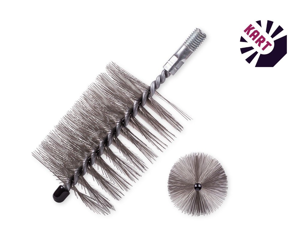 Rourový kartáč o průměru 50 mm, závitem M12 je osazen hladkým nerezovým drátem o průměru 0,40 mm.